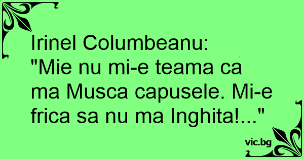 "Mie nu mi-e teama ca ma Musca capusele. Mi-e frica sa nu ma Inghita!..."