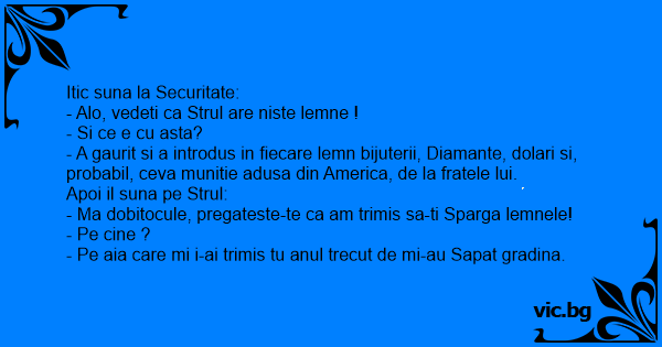 - Ma dobitocule, pregateste-te ca am trimis sa-ti Sparga lemnele!