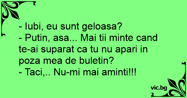 - Putin, asa... Mai tii minte cand te-ai suparat ca tu nu apari in poza mea de buletin?