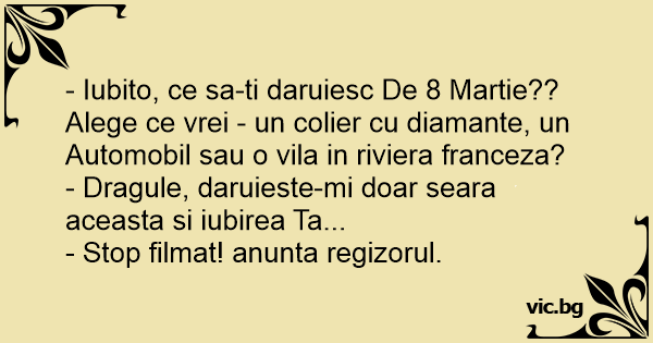 - Iubito, ce sa-ti daruiesc De 8 Martie?? Alege ce vrei - un colier cu diamante, un Automobil sau o vila in riviera franceza?