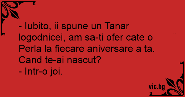 - Iubito, ii spune un Tanar logodnicei, am sa-ti ofer cate o Perla la fiecare aniversare a ta. Cand te-ai nascut?