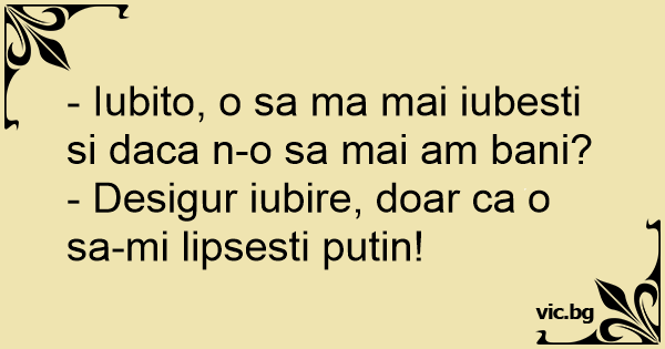 - Iubito, o sa ma mai iubesti si daca n-o sa mai am bani?