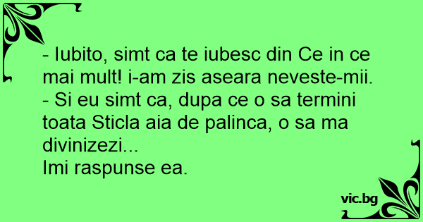 - Iubito, simt ca te iubesc din Ce in ce mai mult! i-am zis aseara neveste-mii.