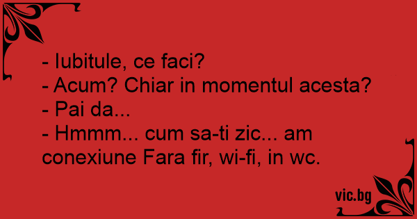 - Hmmm... сuм sa-ti zic... am conexiune Fara fir, wi-fi, in wc.