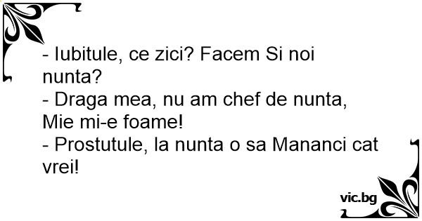 - Draga mea, nu am chef de nunta, Mie mi-e foame!