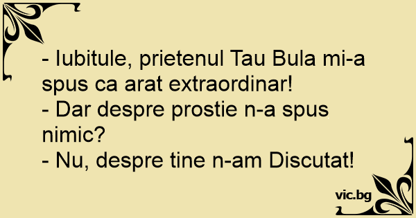- Iubitule, prietenul Tau Bula mi-a spus ca arat extraordinar!