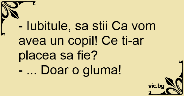 - Iubitule, sa stii Ca vom avea un copil! Ce ti-ar placea sa fie?