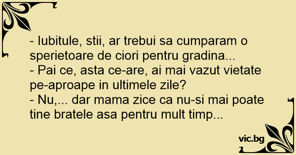 - Iubitule, stii, ar trebui sa cumparam o sperietoare de ciori pentru gradina...