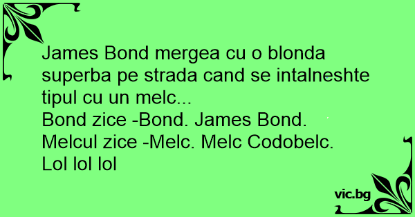 James Bond mergea cu o blonda superba pe strada cand se intalneshte tipul cu un melc...
