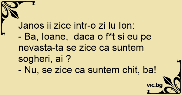 - Ba, Ioane, daca o f*t si eu pe nevasta-ta se zice ca suntem sogheri, ai ?