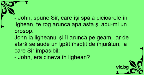 - John, spune Sir, care îşi spăla picioarele în lighean, te rog aruncă apa asta şi adu-mi un prosop.