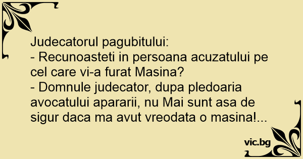 - Domnule judecator, dupa pledoaria avocatului apararii, nu Mai sunt asa de sigur daca ma avut vreodata o masina!...