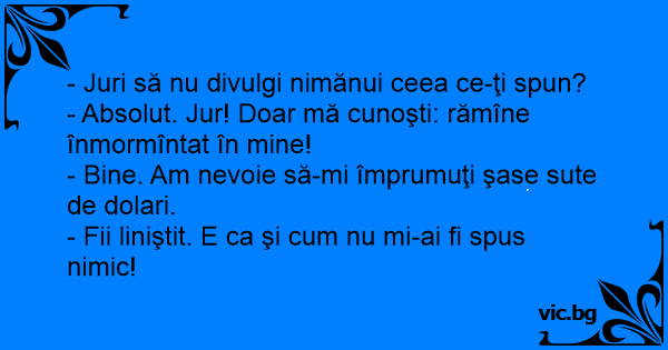 - Absolut. Jur! Doar mă cunoşti: rămîne înmormîntat în mine!