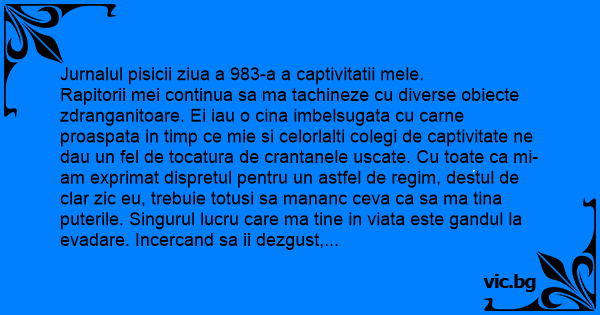 Jurnalul pisicii ziua a 983-a a captivitatii mele.