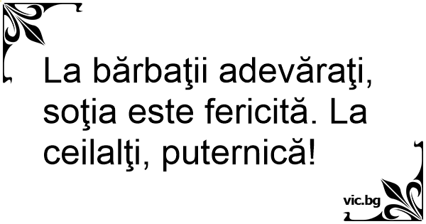 La bărbaţii adevăraţi, soţia este fericită. La ceilalţi, puternică!
