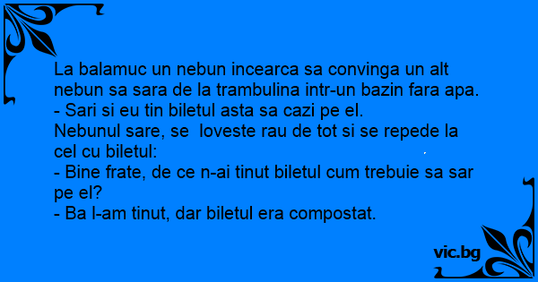 - Bine frate, de ce n-ai tinut biletul сuм trebuie sa sar pe el?