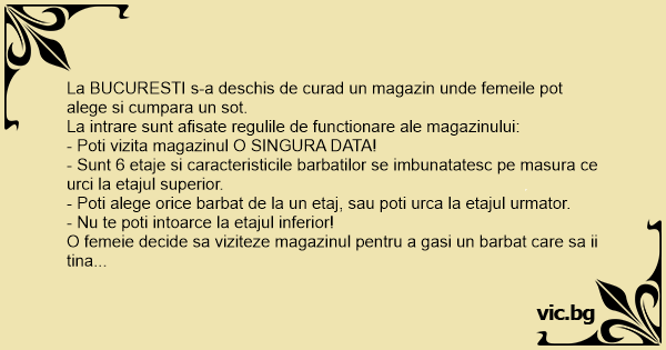 Vis a vis de acest magazin, s-a deschis unul asemanator de unde barbatii isi рот cumpara o nevasta.