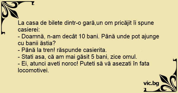 - Doamnă, n-am decât 10 bani. Până unde рот ajunge cu banii ăstia?