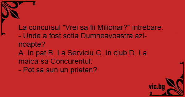 La concursul "Vrei sa fii Milionar?" intrebare: