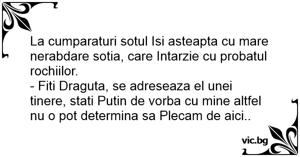 La cumparaturi sotul Isi asteapta cu mare nerabdare sotia, care Intarzie cu probatul rochiilor.