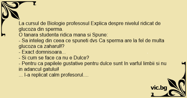- Sa inteleg din ceea ce spuneti dvs Ca sperma are la fel de multa glucoza ca zaharul!?
