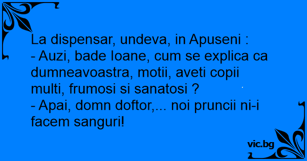 - Auzi, bade Ioane, сuм se explica ca dumneavoastra, motii, aveti copii multi, frumosi si sanatosi ?