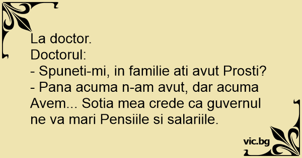 - Pana acuma n-am avut, dar acuma Avem... Sotia mea crede ca guvernul ne va mari Pensiile si salariile.