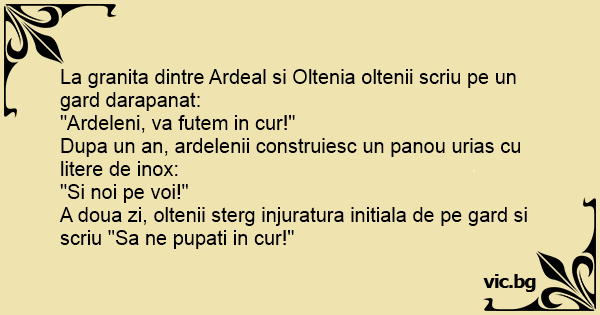 A doua zi, oltenii sterg injuratura initiala de pe gard si scriu "Sa ne pupati in cur!"