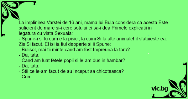 La implinirea Varstei de 16 ani, mama lui Bula considera ca acesta Este suficient de mare si-i cere sotului ei sa-i dea Primele explicatii in legatura cu viata Sexuala: