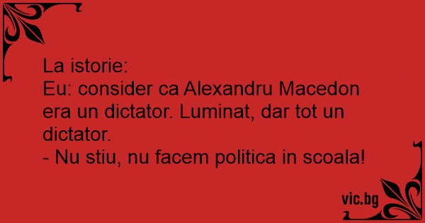 Eu: consider ca Alexandru Macedon era un dictator. Luminat, dar tot un dictator.