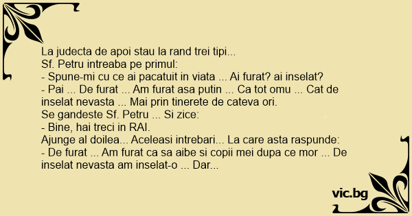 - Poftim?! Pai pe cei din fata mea i-ati trimis in RAI si au si pacate!