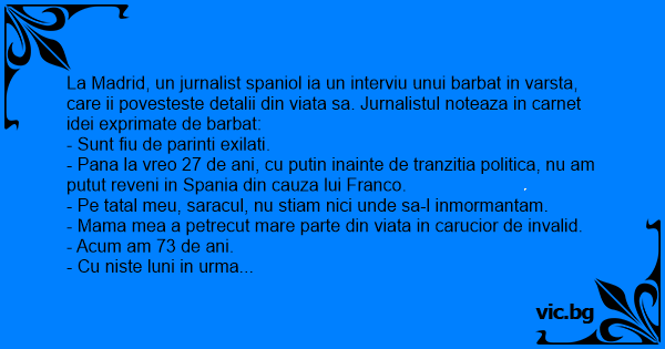 - Pana la vreo 27 de ani, cu putin inainte de tranzitia politica, nu am putut reveni in Spania din cauza lui Franco.