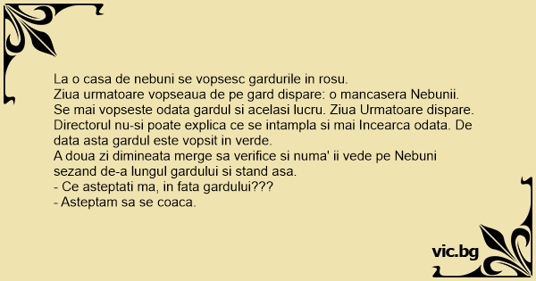 A doua zi dimineata merge sa verifice si numa' ii vede pe Nebuni sezand de-a lungul gardului si stand asa.