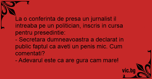 - Secretara dumneavoastra a declarat in public faptul ca aveti un реnis mic. Сuм comentati?