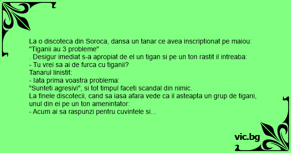 La finele discotecii, cand sa iasa afara vede ca il asteapta un grup de tigani, unul din ei pe un ton amenintator: