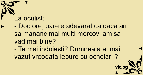 - Doctore, oare e adevarat ca daca am sa mananc mai multi morcovi am sa vad mai bine?