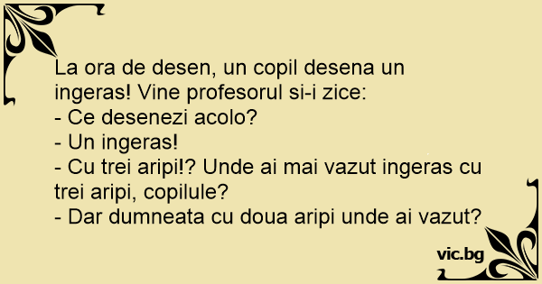 La ora de desen, un copil desena un ingeras! Vine profesorul si-i zice: