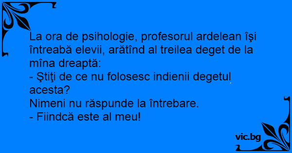 La ora de psihologie, profesorul ardelean îşi întreabă elevii, arătînd al treilea deget de la mîna dreaptă: