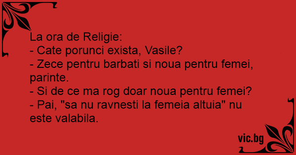 - Pai, "sa nu ravnesti la femeia altuia" nu este valabila.