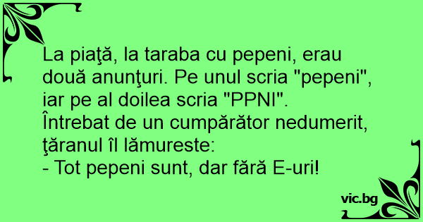 La piaţă, la taraba cu pepeni, erau două anunţuri. Pe unul scria "pepeni", iar pe al doilea scria "PPNI".