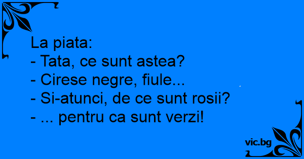 Dēls mammai jautā: - "Mammu, kas tās par ogām?" -"Melnās upenes!" -Kāpēc sarkanas? -Tāpēc, ka zaļas!