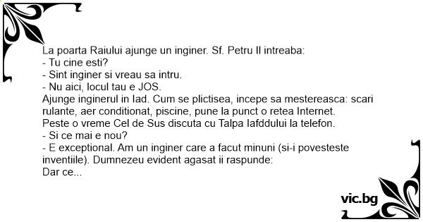 La poarta Raiului ajunge un inginer. Sf. Petru Il intreaba: