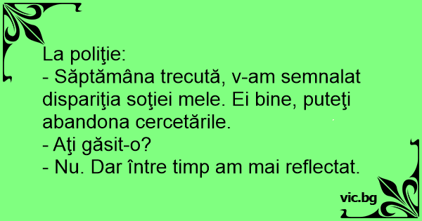 - Săptămâna trecută, v-am semnalat dispariţia soţiei mele. Ei bine, puteţi abandona cercetările.