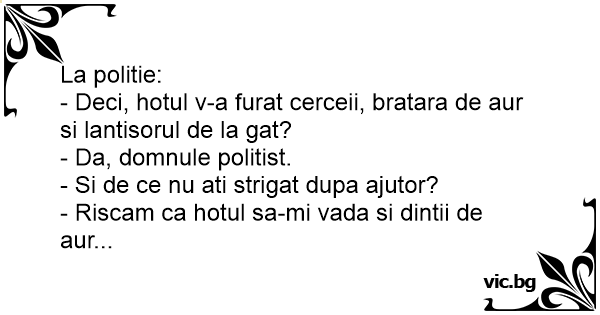 - Riscam ca hotul sa-mi vada si dintii de aur...