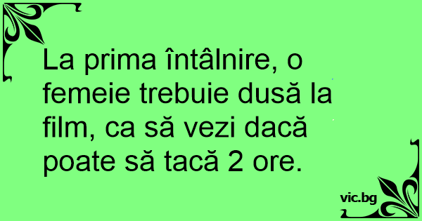 La prima întâlnire, o femeie trebuie dusă la film, ca să vezi dacă poate să tacă 2 ore.