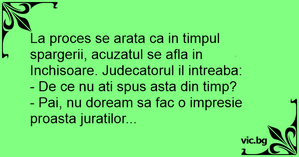 La proces se arata ca in timpul spargerii, acuzatul se afla in Inchisoare. Judecatorul il intreaba: