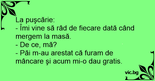 - Păi m-au arestat că furam de mâncare şi acum mi-o dau gratis.