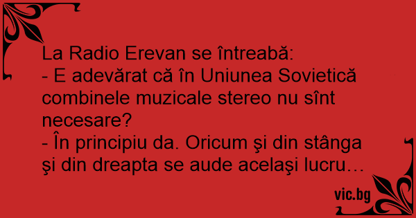- E adevărat că în Uniunea Sovietică combinele muzicale stereo nu sînt necesare?