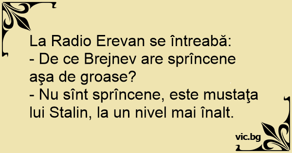 - Nu sînt sprîncene, este mustaţa lui Stalin, la un nivel mai înalt.