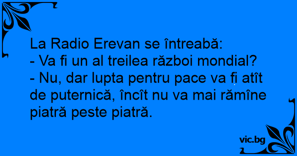 - Nu, dar lupta pentru pace va fi atît de puternică, încît nu va mai rămîne piatră peste piatră.